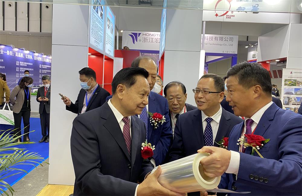 On the morning of November 3, Chairman Zhang Chonghe of China Light Industry Federation attended the opening ceremony and organized representatives to visit the exhibition. In Hall 4, President Zhang Chonghe personally visited the Double Star New Material Booth to have a detailed understanding of our optical grade films, environment-friendly new energy materials and other products, and asked about our production and enterprise development.