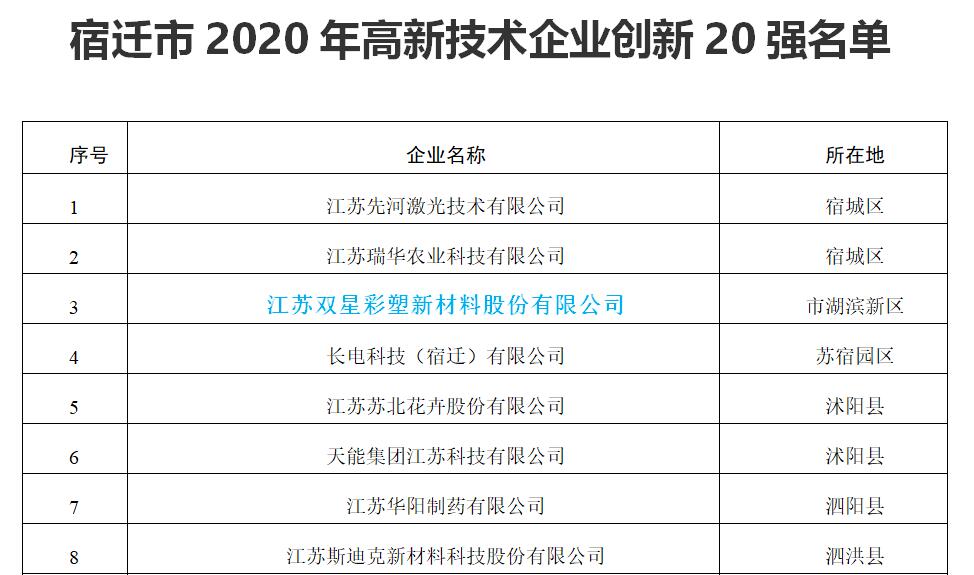 Recently, through expert review and a series of strict selection processes, Double Star New Materials was successfully selected as one of the "2020 Suqian Top 20 High tech Enterprises" by virtue of its leading technical strength, outstanding product advantages and enterprise growth potential, which is another golden enterprise honor that Double Star New Materials won in 2020.