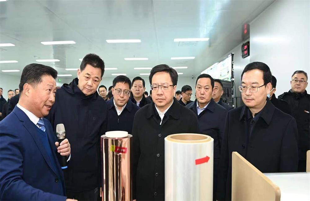 At 8:50 AM on January 4th, Chen Zhongwei, the Secretary of Suqian Municipal Committee, and Liu Hao, the Executive Vice Mayor, led a delegation of leaders to visit the Double Star New Materials, where they observed the production and operation of the precision coating deep-processing project on-site.