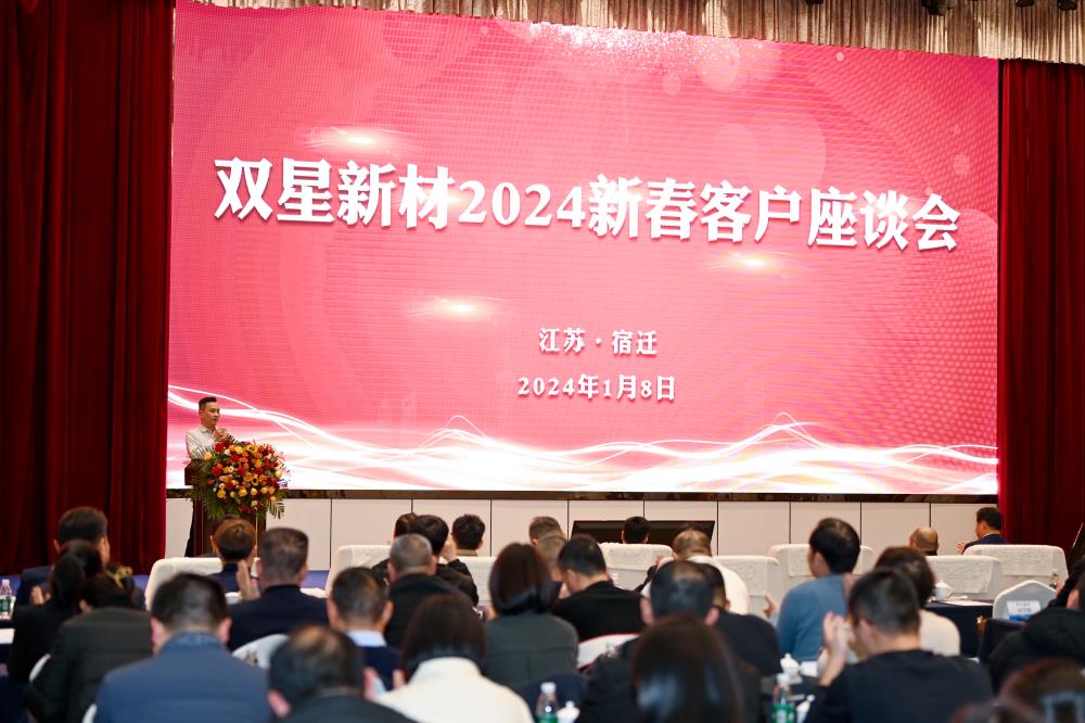 At the symposium, Mr. Wu Peifu, Chairman and General Manager of Shuangxing New Materials, delivered a speech, expressing gratitude to the participating merchants for their long-term support for the development of Shuangxing New Materials. He also conducted a macro-environmental analysis of the industry, discussed corporate development, industry market development, and provided a market outlook for 2024.