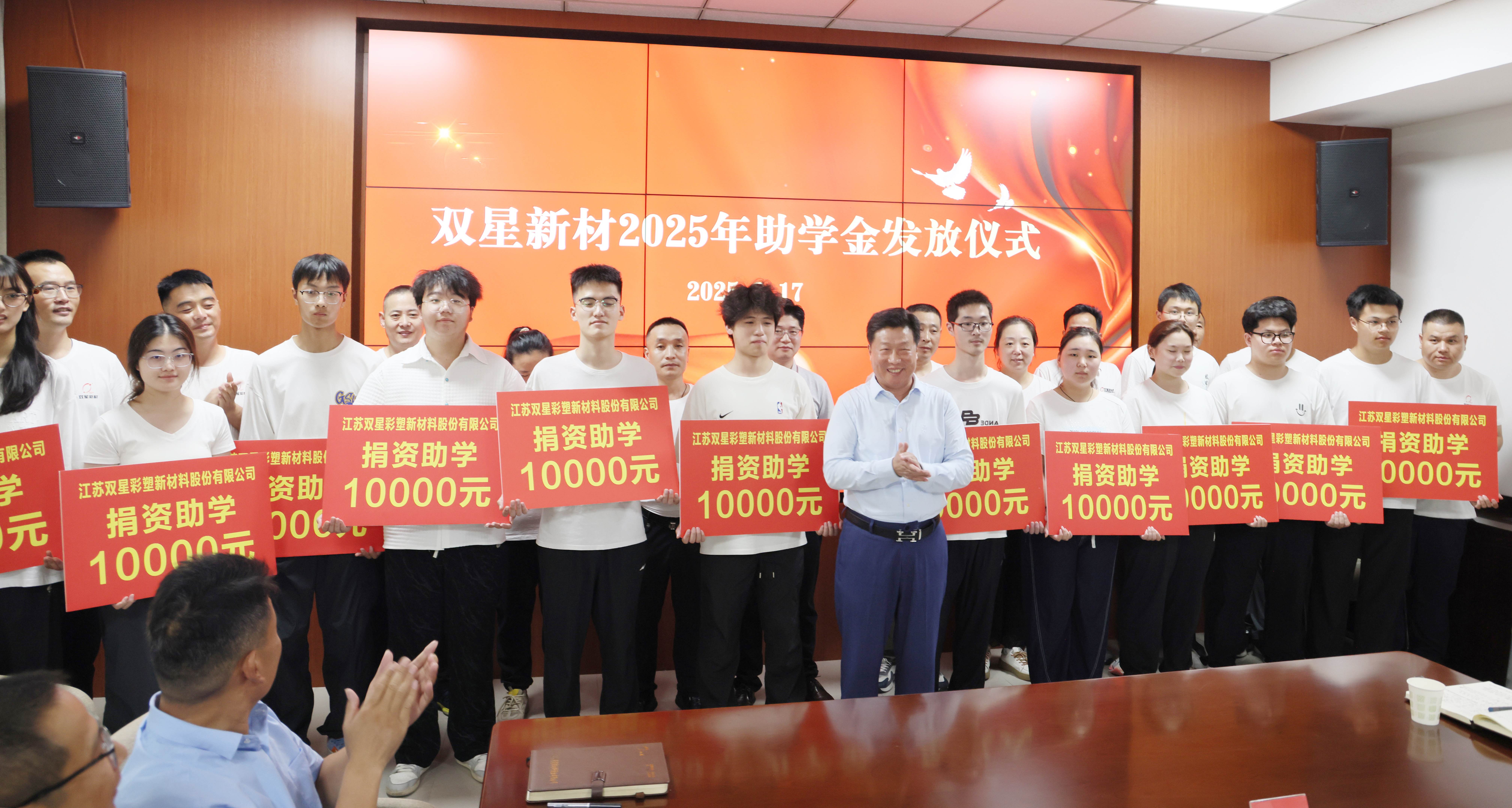8月17日,雙星新材舉行2025年職工子女助學(xué)金發(fā)放儀式,向12位在高考中脫穎而出的職工子女每人頒發(fā)10000元助學(xué)金,以此傳遞企業(yè)的溫情,助力他們揚(yáng)帆遠(yuǎn)航。